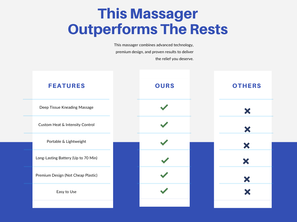 - Cordless & Portable → Up to 70 minutes of relaxation on one charge